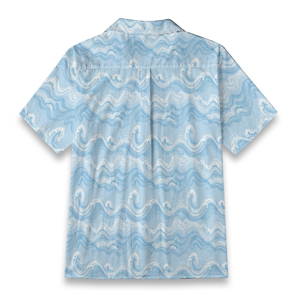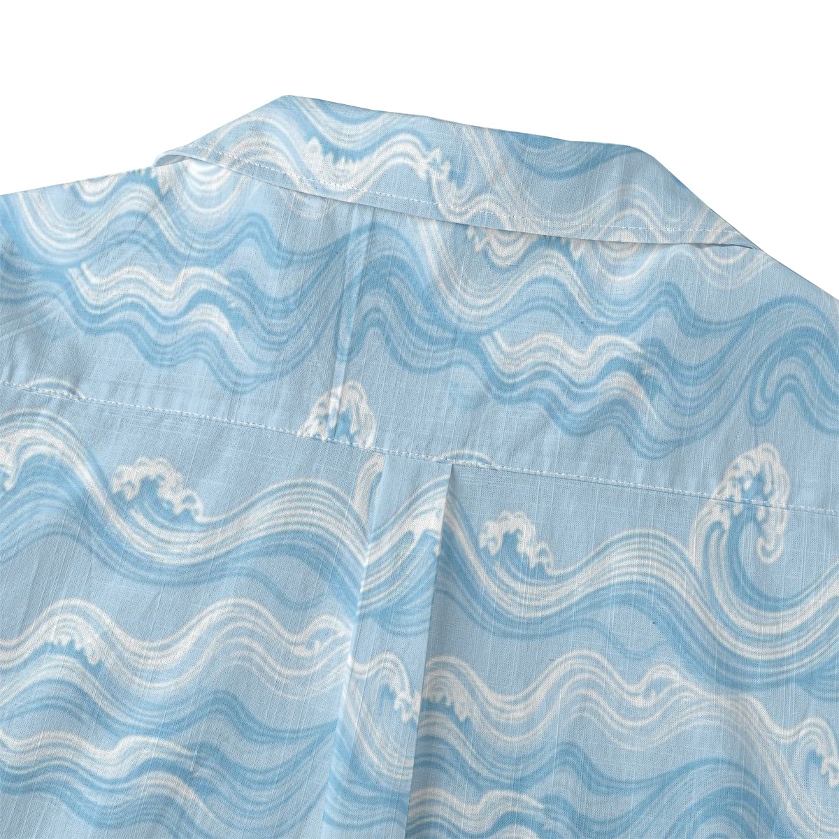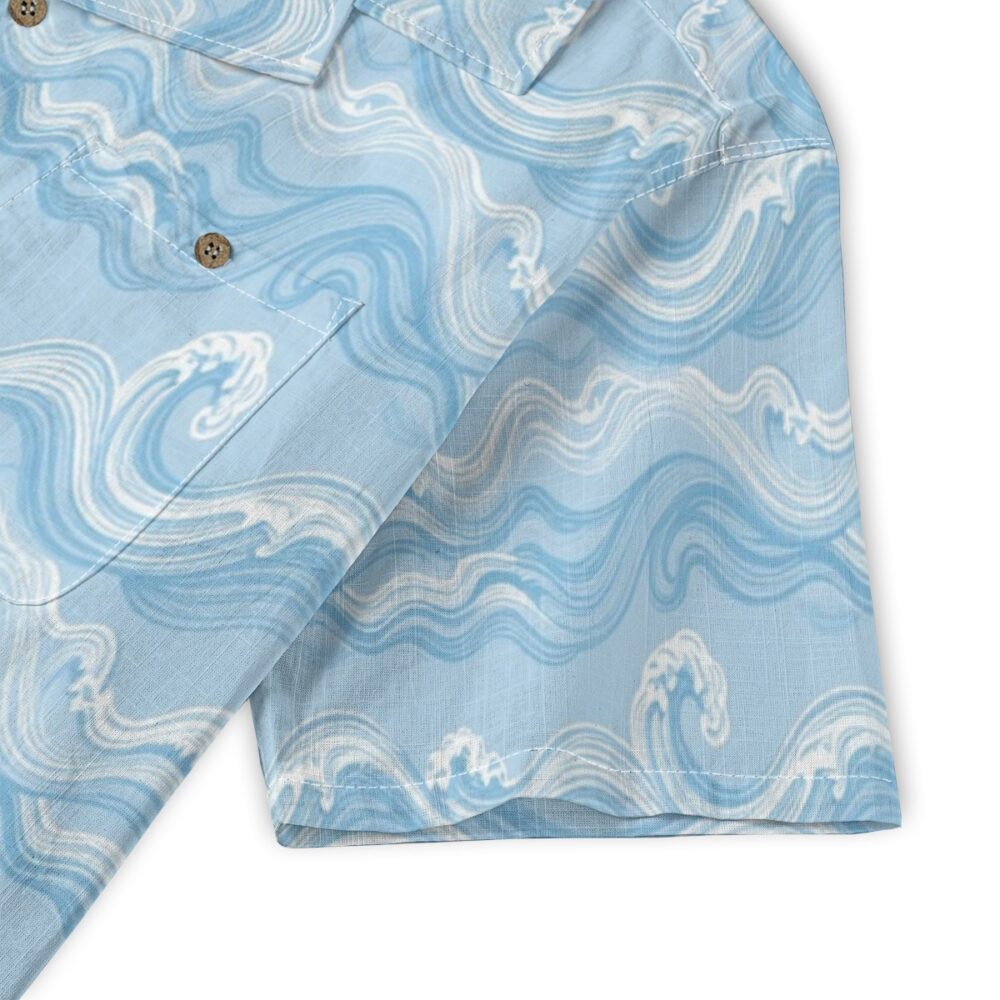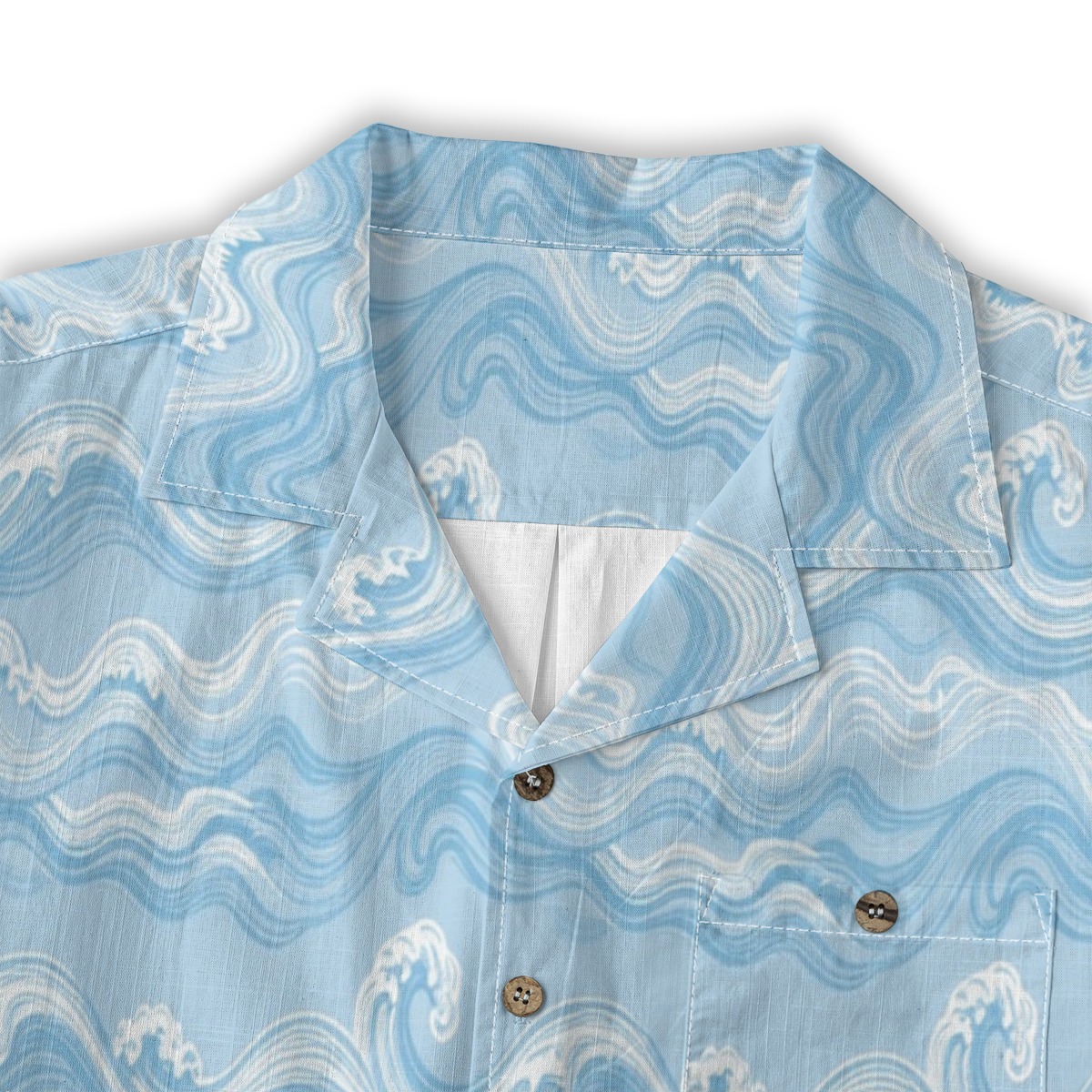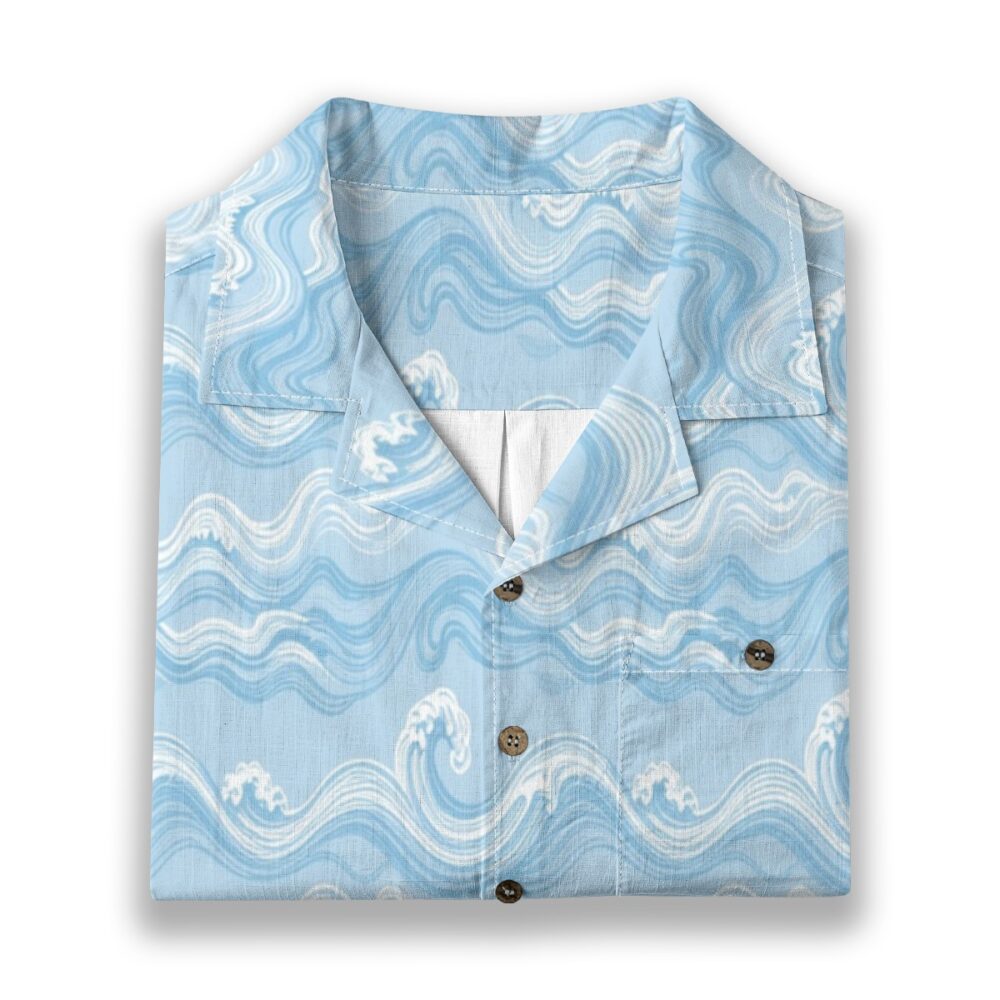 Fine wave threads sweep gently across a pale blue surface, creating a soft and airy ocean feel. The light tones blend seamlessly, while the even spacing keeps the design calm and balanced.