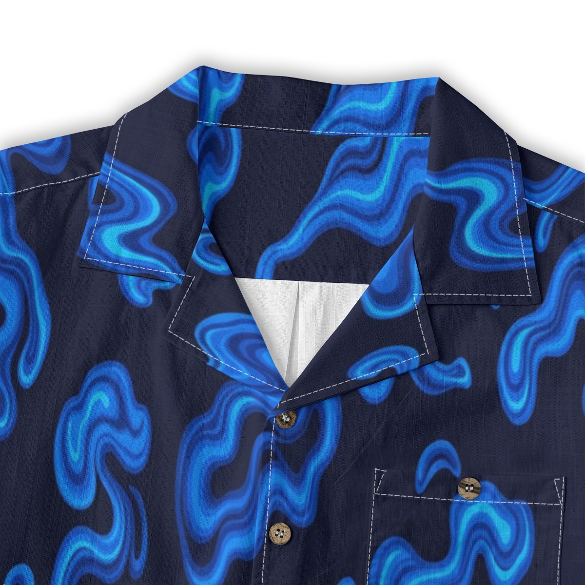 Strong current patterns flow across a dark navy base, creating depth and movement. The layered blues enhance the sense of motion, while the evenly spaced layout keeps the design balanced and immersive.