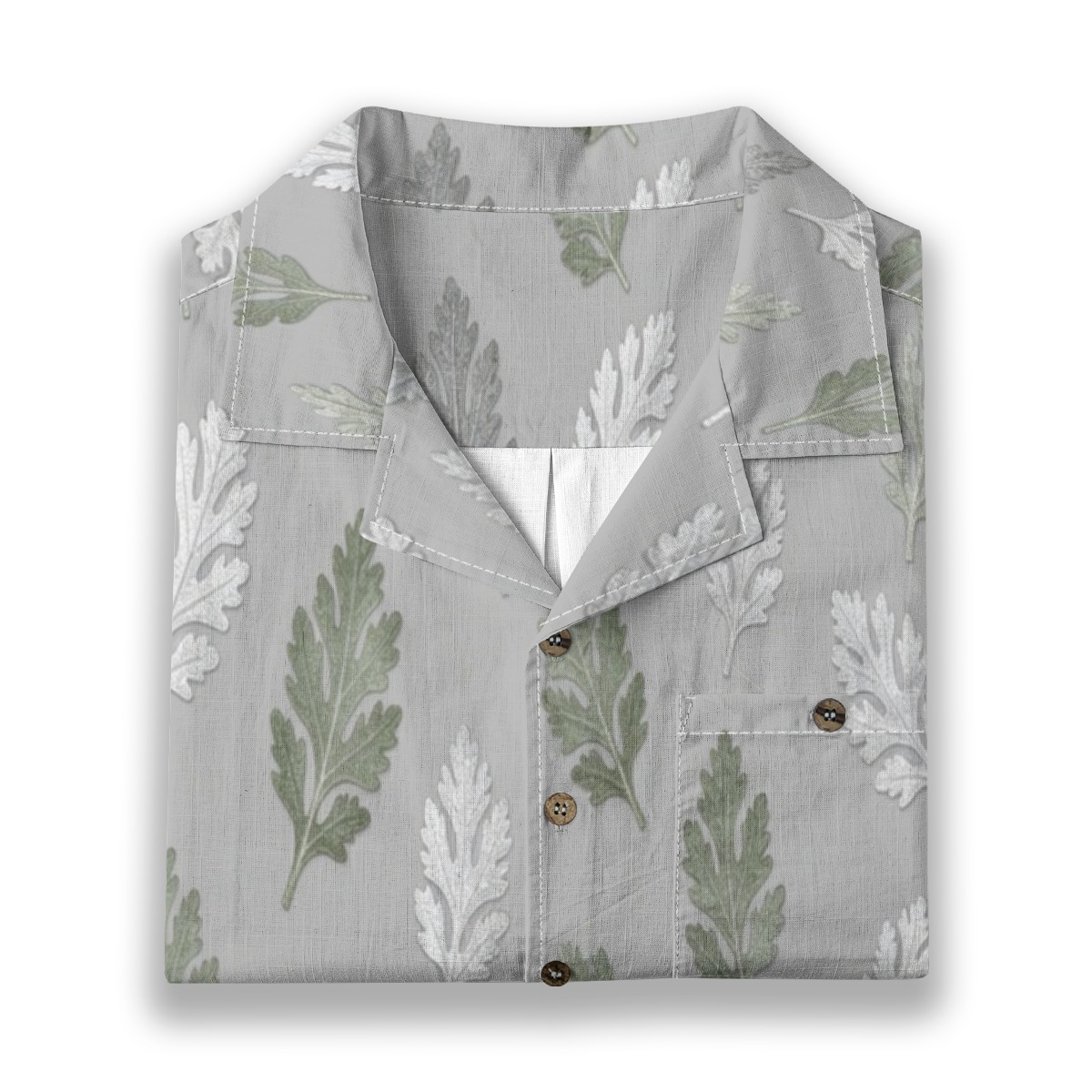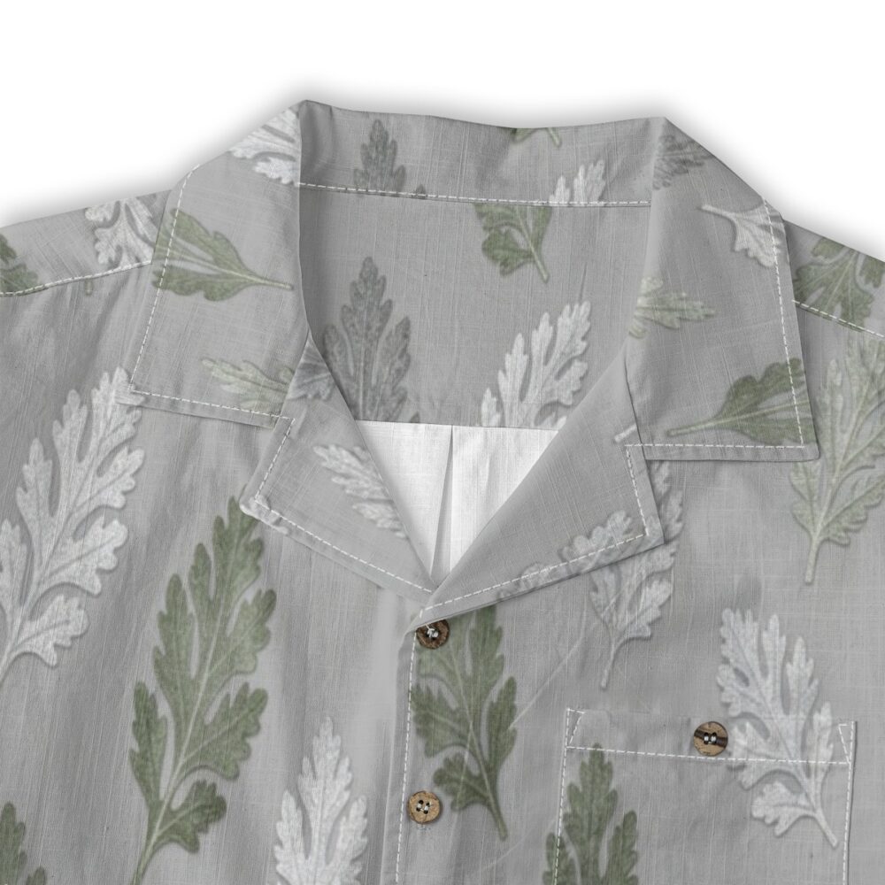 Soft dusty miller leaves create a textured pattern with silvery tones against a gray backdrop. The muted palette feels calm and refined, while the repeating layout ensures a smooth, cohesive design.