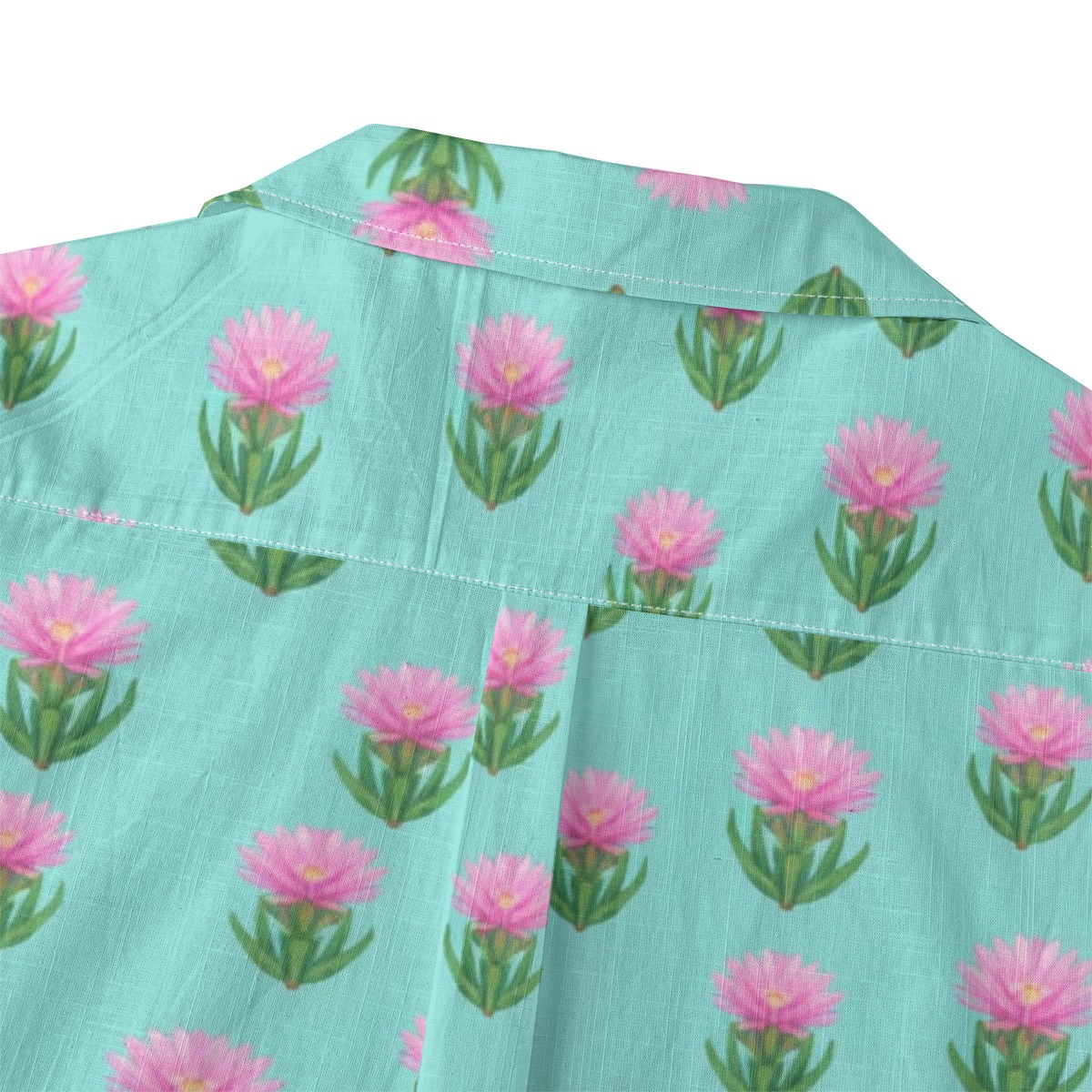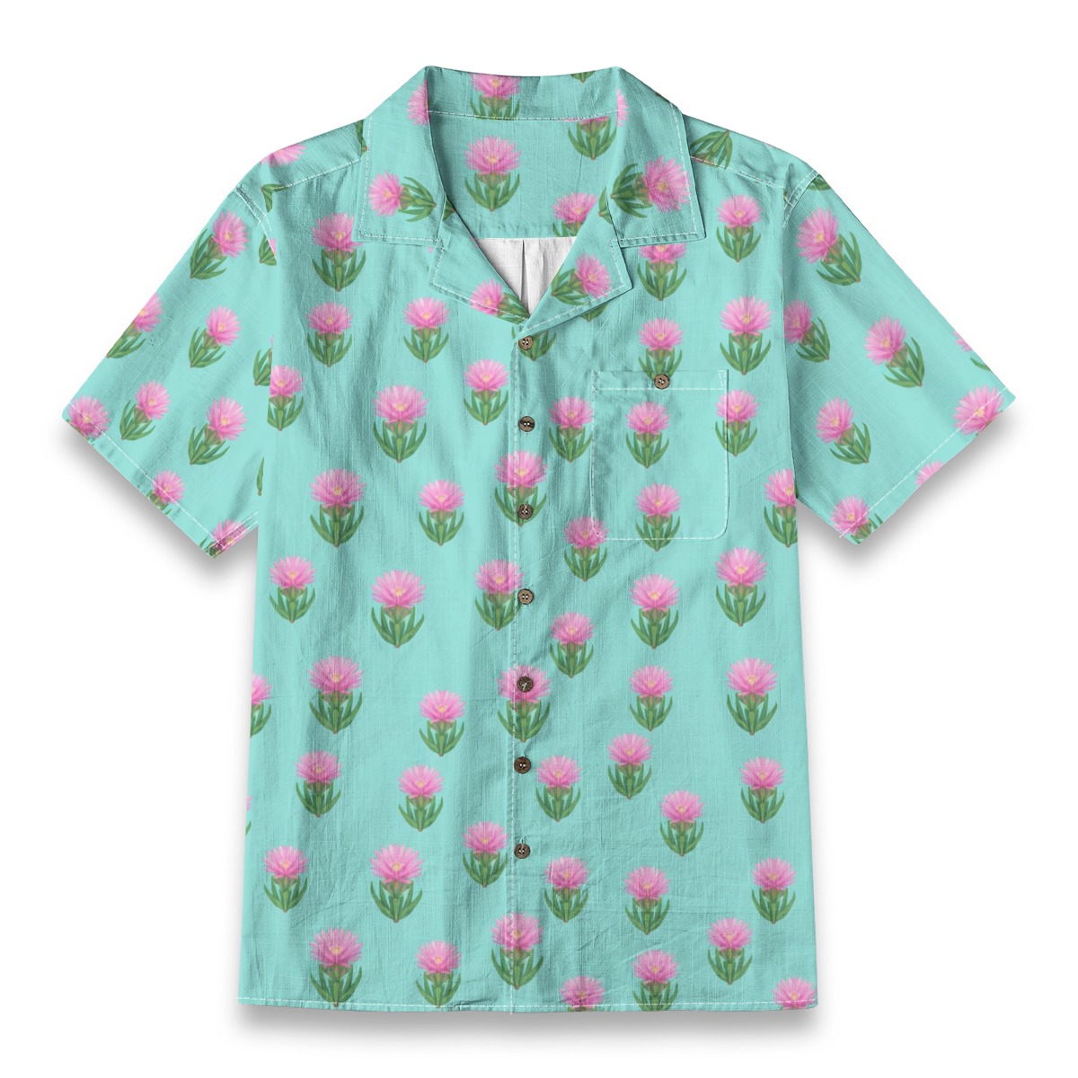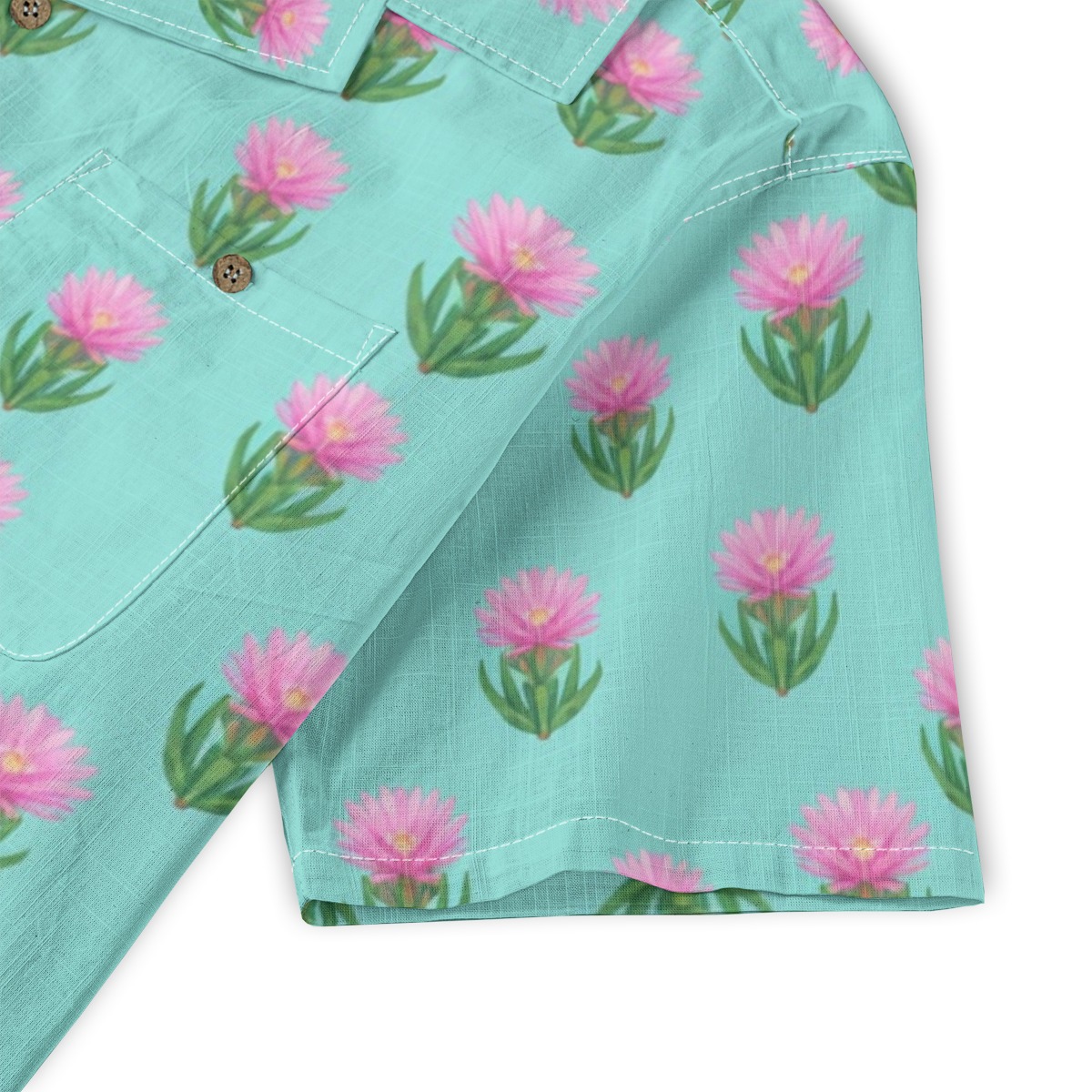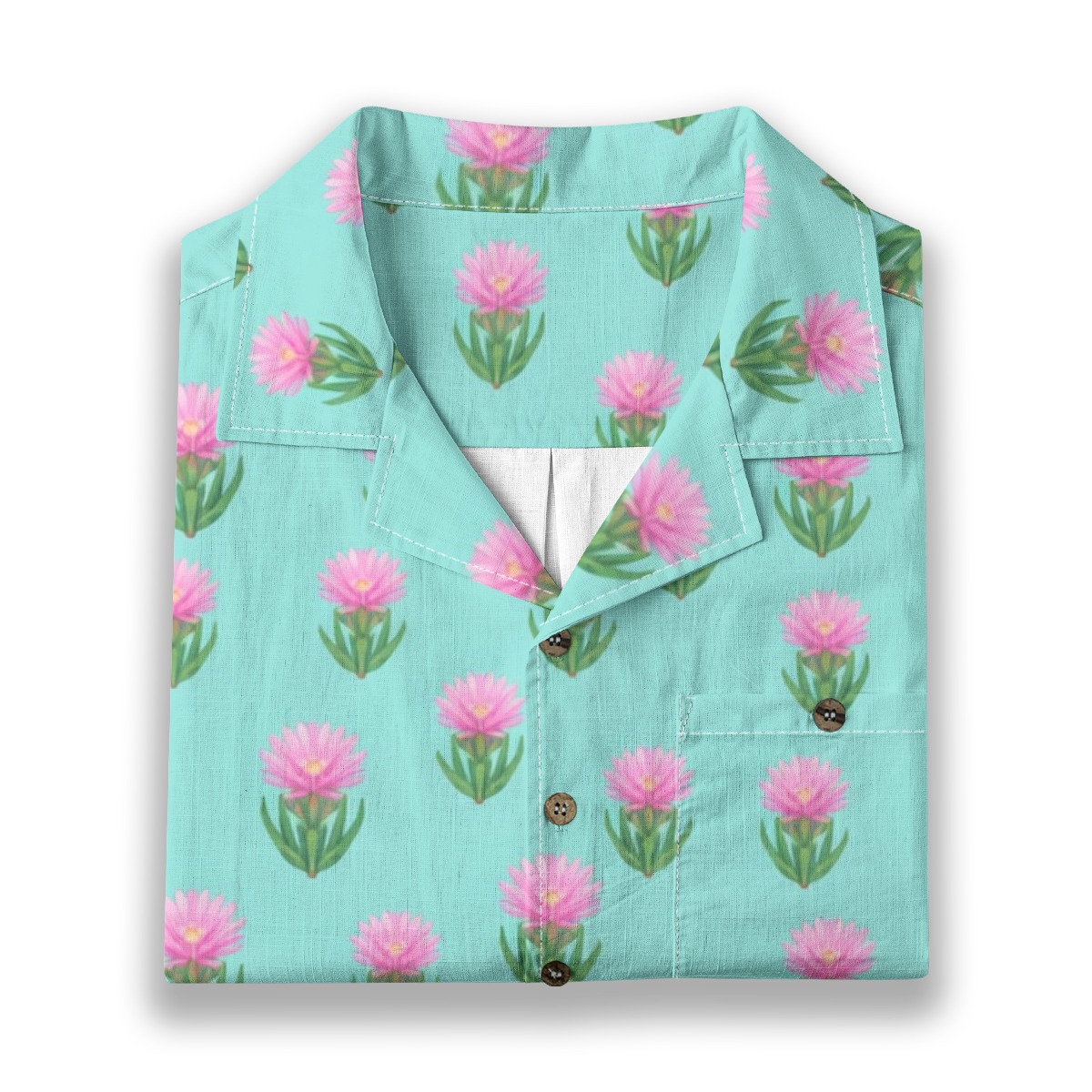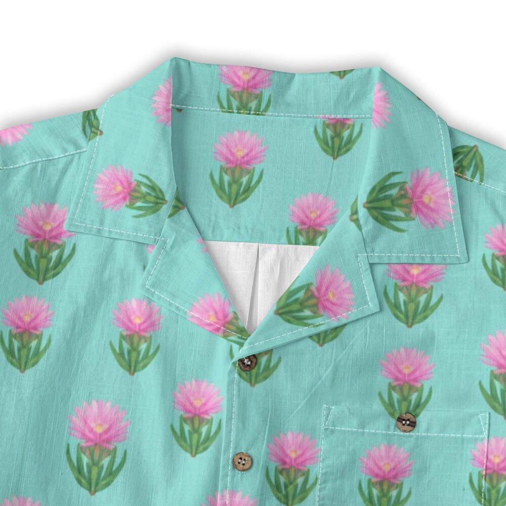 Vivid ice plant blooms spread across a bright aqua surface, creating a fresh and coastal-inspired pattern. The pink accents add contrast, while the even spacing keeps the design lively and balanced.