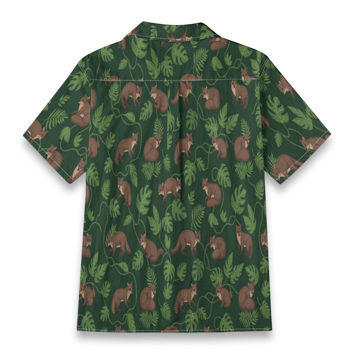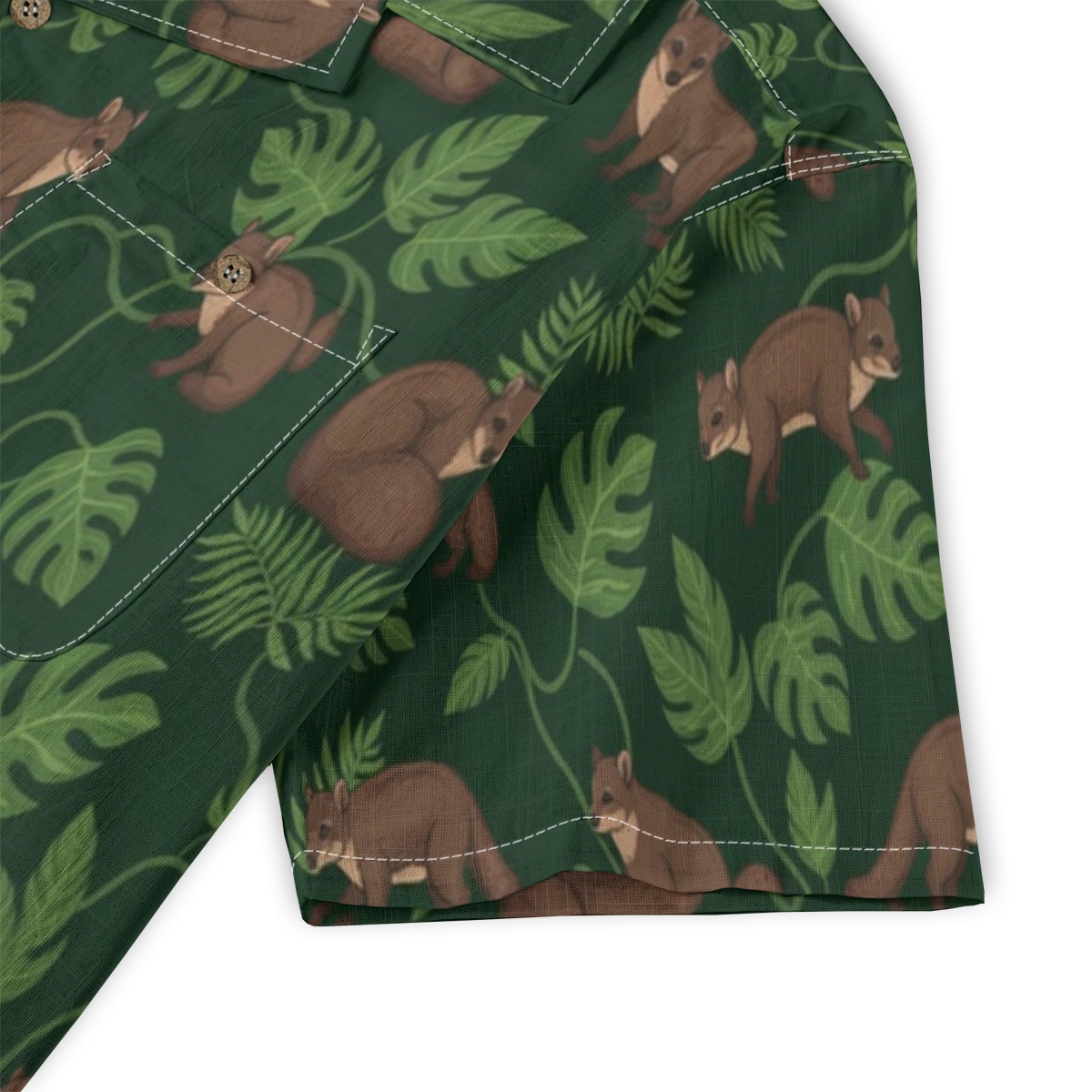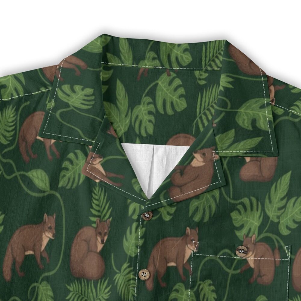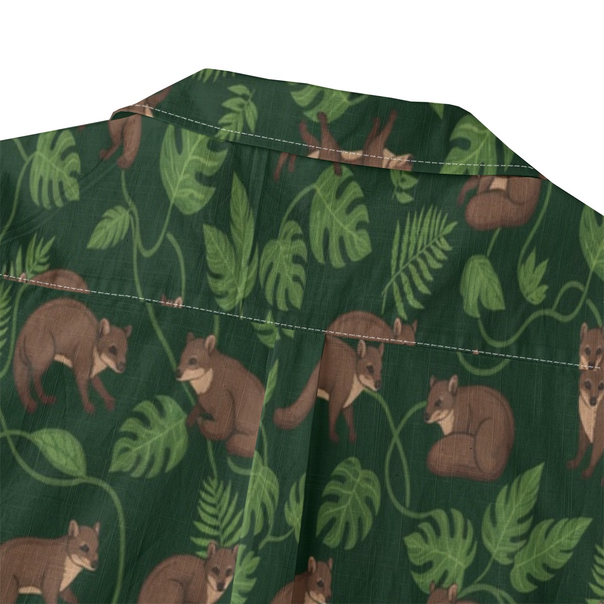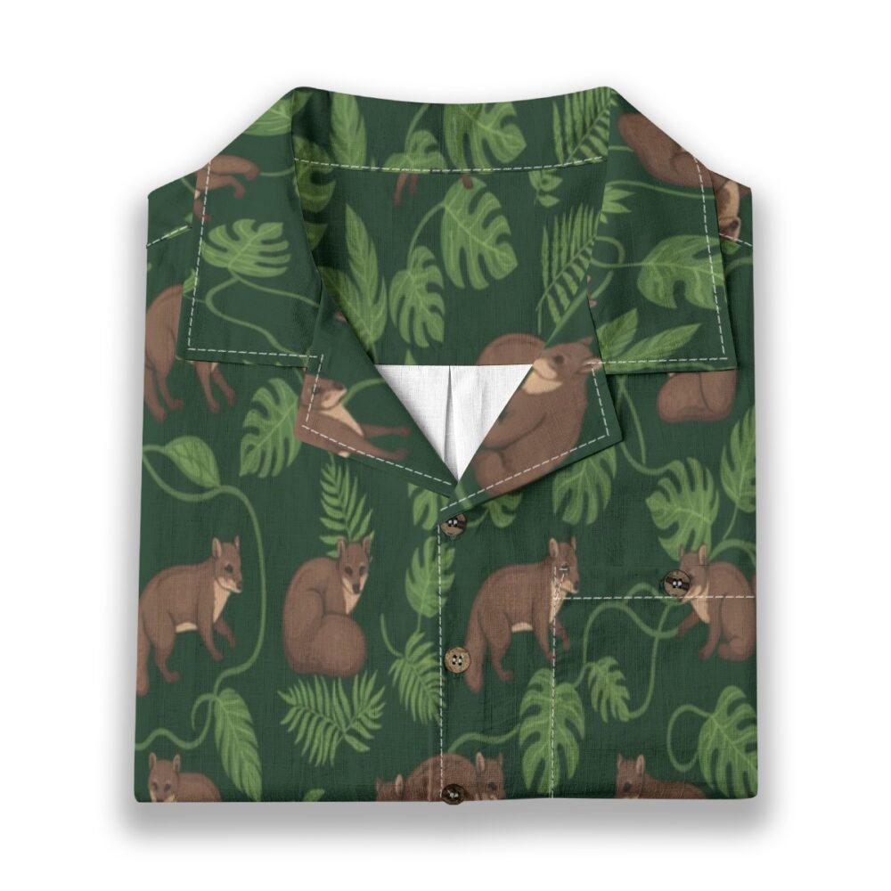 Energetic tayra move through lush jungle leaves, forming a rich and immersive pattern. The deep green background enhances the natural tones, while the repeating layout creates a smooth and flowing visual rhythm.